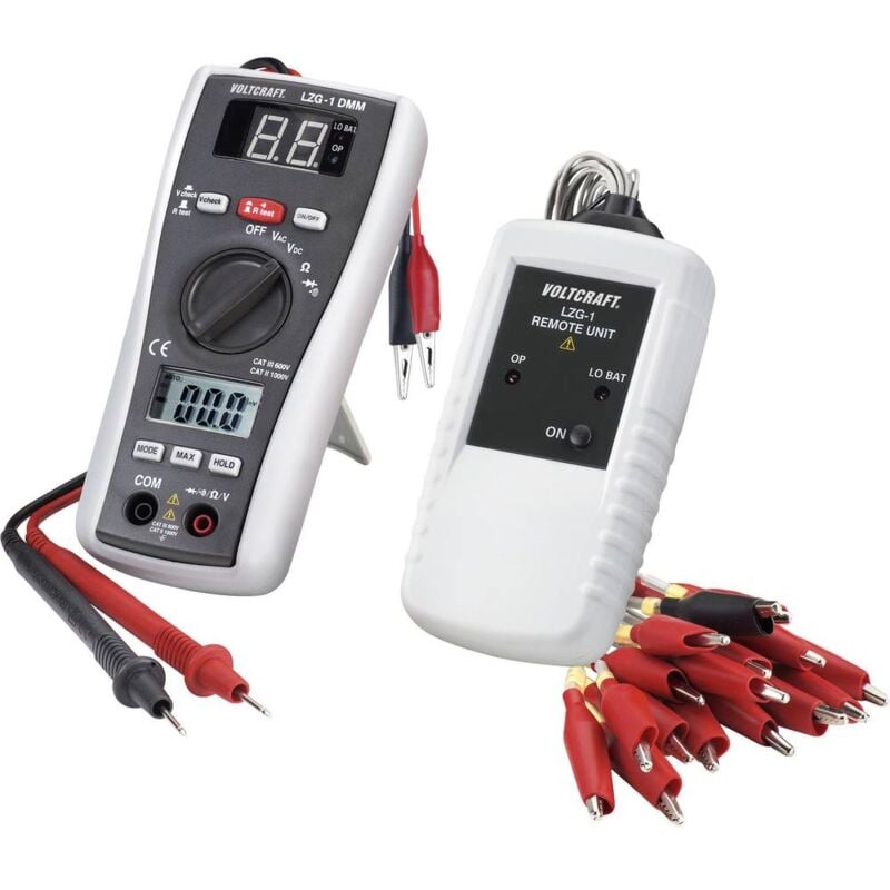 Dettagli tecnici Categoria di misura (LOV) CAT III 600 V Dimensione del prodotto, larghezza 75 mm Dimensione, profondità 44 mm Dimensioni (L x A x P) 75 x 162 x 44 mm Dimensioni prodotto Altezza 162 mm Peso 310 g Tipo prodotto Identificatore cavi Campo di misura della tensione AC: 1 mV - 600 V, DC: 0,1 mV - 600 V Resistenza area di misurazione: 0,1 Ω - 20 MΩ Valori di misura: Identificazione, continuità, interruzione Multimetro VOLTCRAFT con dispositivo di mappatura dei cavi LZG-1 DMM Con l'LZG-1 DMM potete identificare, senza l'aiuto di un'altra persona, fino a 16 conduttori di un cavo. È necessario solo un tubo di massa o di riferimento precedentemente noto (può essere anche un tubo per il riscaldamento o per l'acqua). Il trasmettitore è collegato ai singoli fili con i morsetti a coccodrillo numerati. Sul dispositivo di misurazione avviene direttamente la visualizzazione del numero. Inoltre, l'LZG-1 DMM dispone delle molteplici funzioni di un multimetro. Con la sua protezione in