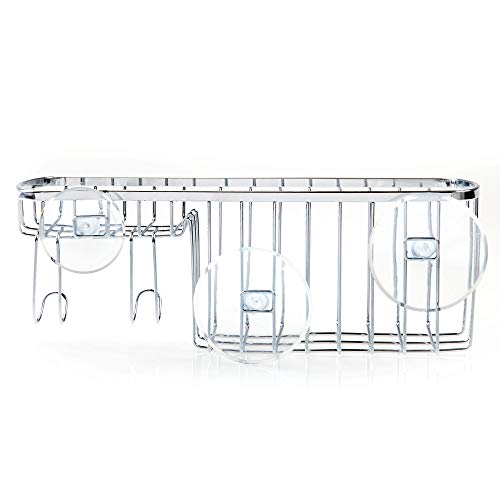 IDesign 57302EU Gia Bagno Portaoggetti Doccia a Ventosa, Metallo, Argento, 9.75x28.25x12 cm