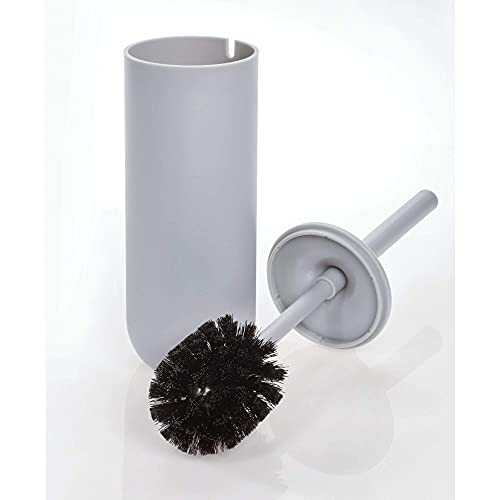 IDesign Accessori bagno con supporto, Spazzolino bagno in plastica, Spazzolino WC con setole in silicone e supporto antischizzo, grigio