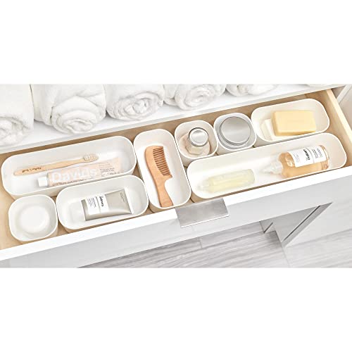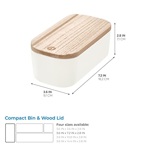 IDesign Cestino portaoggetti in plastica, Organizer trucchi compatto realizzato in plastica riciclata senza BPA, Organizer bagno con coperchio in legno di Paulownia, bianco