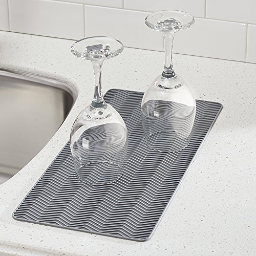 IDesign Chevron Scolapiatti da Appoggio, Tappetino in Silicone a Zig-Zag di Piccole Dimensioni Ideale come Sottopentola e Scolaposate, Grigio