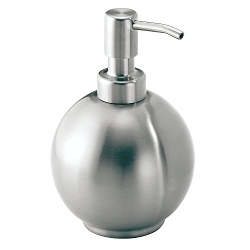 IDesign Forma Pompa Dispenser di Sapone Rotonda per Cucina/Bagno, Metallo, Argento, 10.25x10.25x15.25 cm