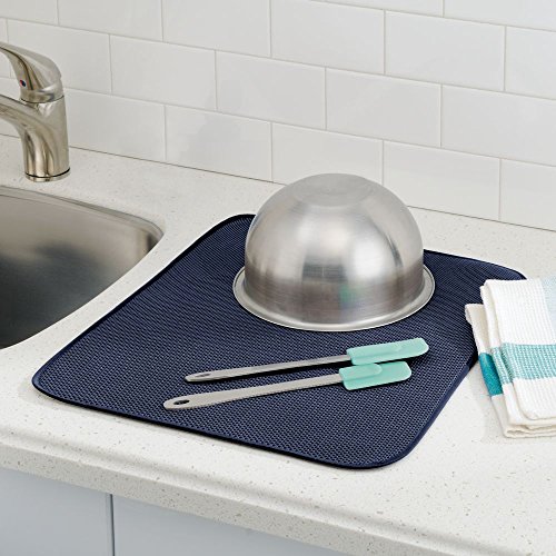 IDesign iDry Tappetino lavello, Grande e sottile tappetino cucina in poliestere per asciugatura veloce delle stoviglie, blu/bianco
