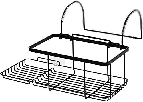 IDesign Organizer bagno, Piccolo portaoggetti vasca in metallo da appendere, Portasapone metallo senza forare per sapone, cosmetici, libri, tablet e smartphone, nero opaco