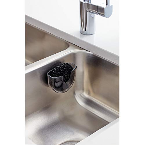 IDesign Organizer cucina, Piccolo porta spugne lavello cucina con ventose, Pratico porta spugne plastica per spugne e pagliette tonde, grigio