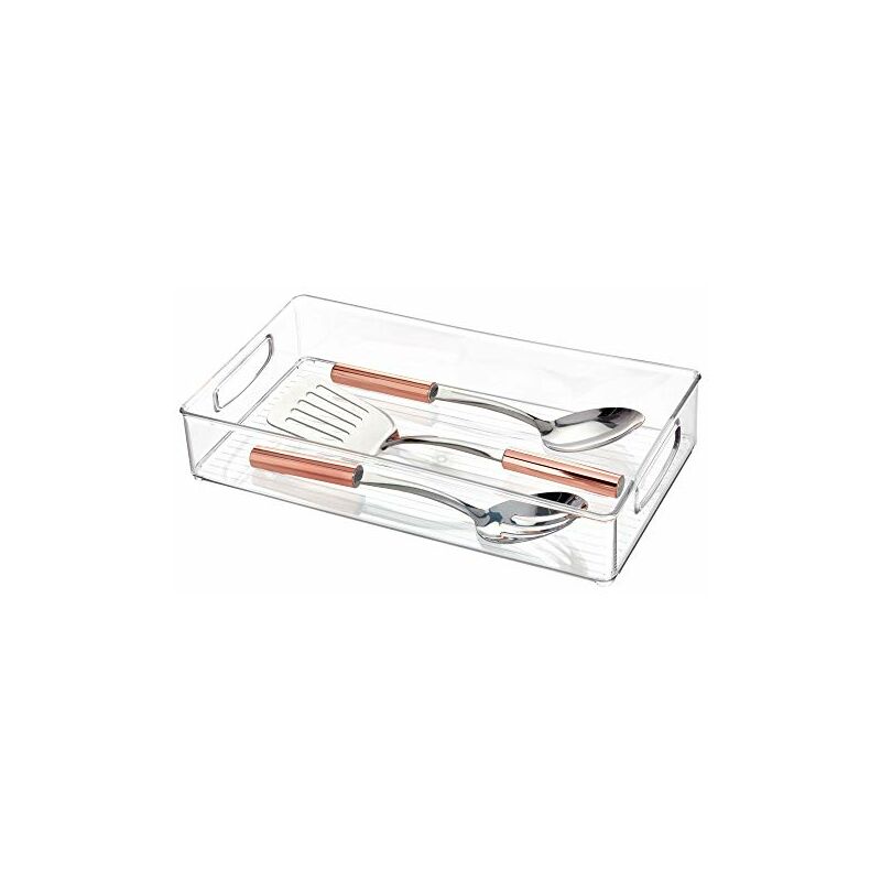 IDesign Organizer cucina, Porta oggetti cucina lungo, Pratica scatola plastica aperta con manici per il trasporto, trasparente GrandeSize: Grande
