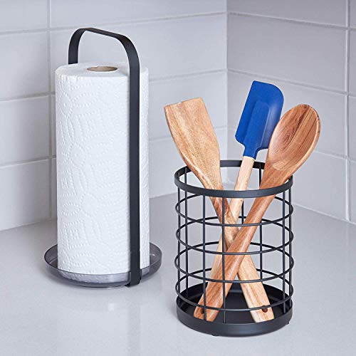 IDesign Organizer cucina per rotoli assorbenti, Portarotolo cucina verticale da appoggio, Pratico portarotoli da cucina in metallo, nero opaco