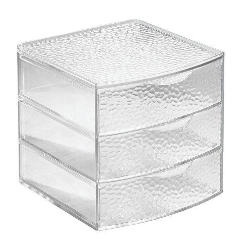 IDesign Rain Organizer Trucchi, Scatola Porta Makeup E Cosmetici Con 3 Cassetti, Contenitore Per Trucchi Ideale Per Il Tavolo Da Trucco, Plastica Trasparente