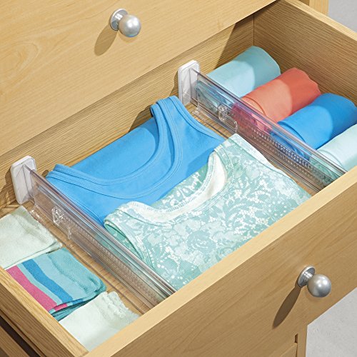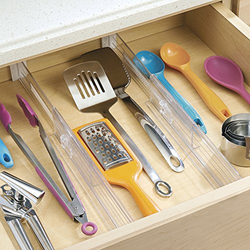 IDesign Separatore cassetti regolabile, Divisore cassetti cucina in plastica, Pratico set da 2 organizer cassetti adatto ai cassetti profondi, trasparente