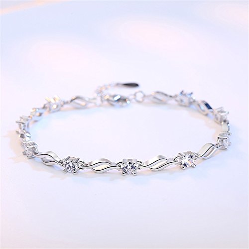 Rap idly Bling Bracciale in argento Sterling 925 zircone cristallo di amore Bracciale da Donna Fatto A Mano Regolabile Gioielli (argento)