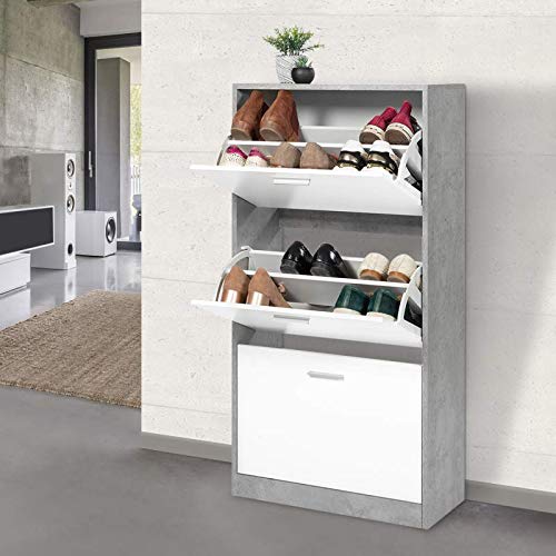 La nostra scarpiera effetto cemento a 3 ante bianche è ideale per risparmiare spazio a casa