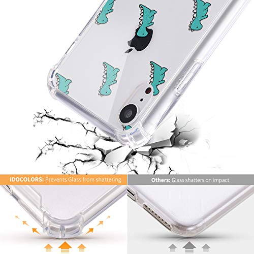 Idocolors Cover per iPhone 12 Dinosauro Trasparente Custodia con Antiurto Cuscino d'Aria [Pannello Posteriore in Rigida PC + Angoli in TPU Morbido] Bumper Protettiva Silicone Case