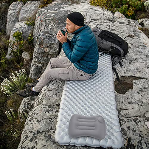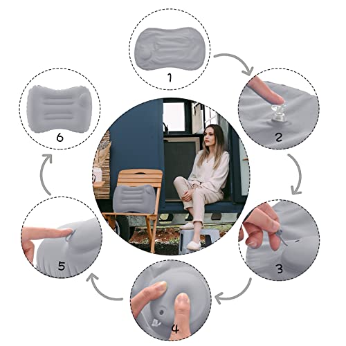 Idocolors 2X Cuscini Gonfiabili da Campeggio Grigio Cuscino da Spiaggia Leggero e Portatile Cuscini per Viaggio, Escursioni ed Alpinismo