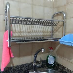 -due spalline laterali che comprendono anche due buchi di fissaggio per appendere lo scolapiatti a muro.