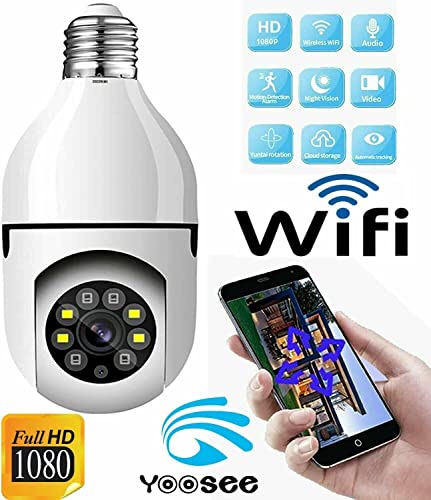 IDOR STORE Telecamera di sicurezza della lampadina, E27 WiFi a colori notturna a 360 gradi Pan/Tilt Telecamera IP panoramica, 2,4 GHz 1080 P Smart Home Sorveglianza Bambini Cam Allarme Due Vie YOOSEE
