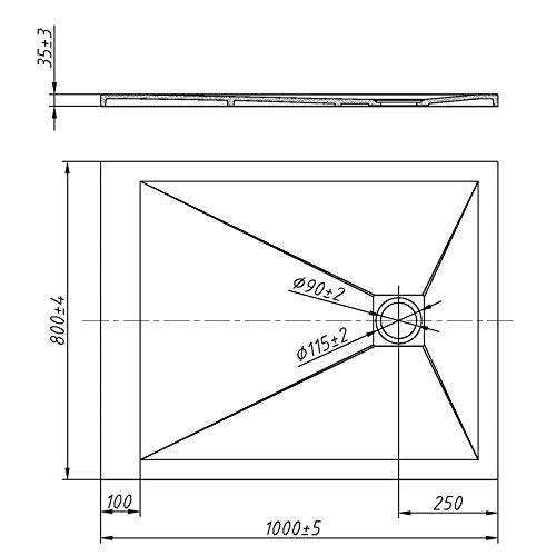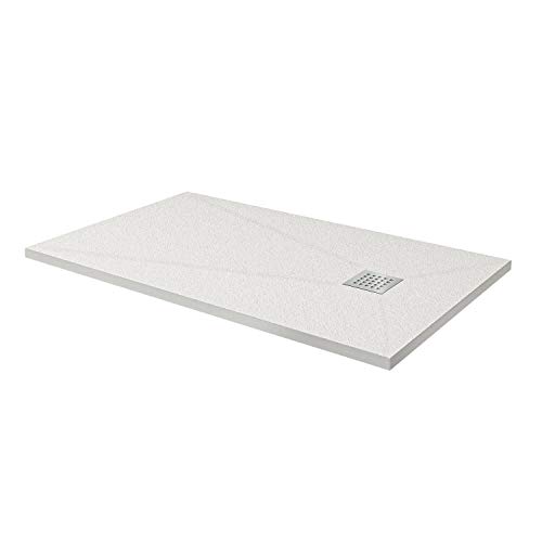 Piatto doccia in Marmoresina effetto pietra Rettangolare 80x100 con copripiletta di scarico in Acciaio Inox colore Bianco