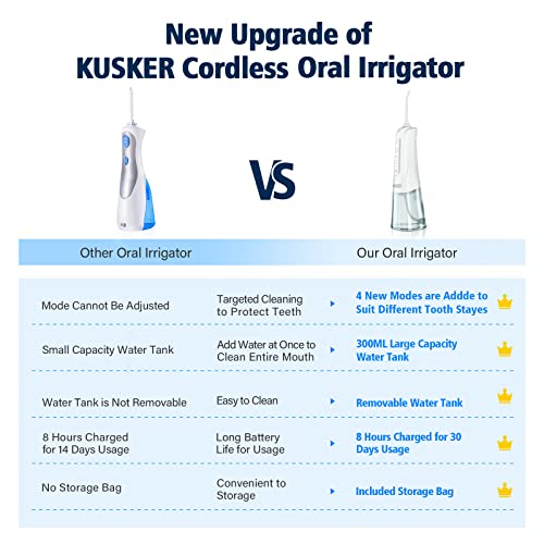 Idropulsore Dentale Professionale, Irrigatore Orale Portatile KUSKER Per Denti, 4 Modalità E 4 Punte A Getto, Impermeabile IPX7 per Pulizia Denti, Apparecchi Spazzolino Ortodontici per Casa e Viaggi