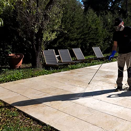 Protezione anti-macchie a lunga durata efficace per 10 anni per pavimenti di terrazze in piastrelle, laterizio, calcestruzzo, pietra naturale, pavé, pietra ricostruita. Trattamento idrorepellente olefugo invisibile destinato alla protezione di pavimentazioni e lastricati porosi e non fessurati.