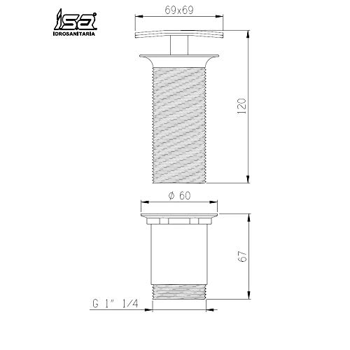 ISA IDROSANITARIA Scarico Clic-Clac con piletta h 67 tappo quadro bombato