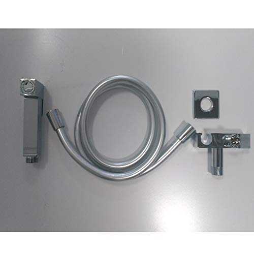 Kit Idroscopino Cromato Quadro Doccetta Per Wc Portatile Shut-Off Monogetto Con Leva