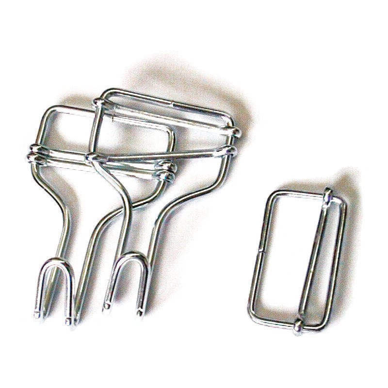 Fibbia rettangolare con passante scorrevole mm. 40x20x2,8, gancio cinghia con 2 traversini, mm. 40. Forniti in bustine da pz. 2+1.