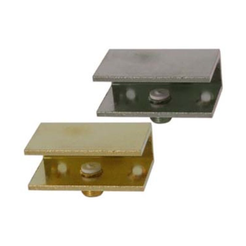 Mm.25x20 in ottone lucido per il fissaggio di mensole in vetro o legno - apertura max mm.9 Categoria merceologica: Mensole, mensoline, reggipiani, ganci - Ferramenta - Mensole per vetri