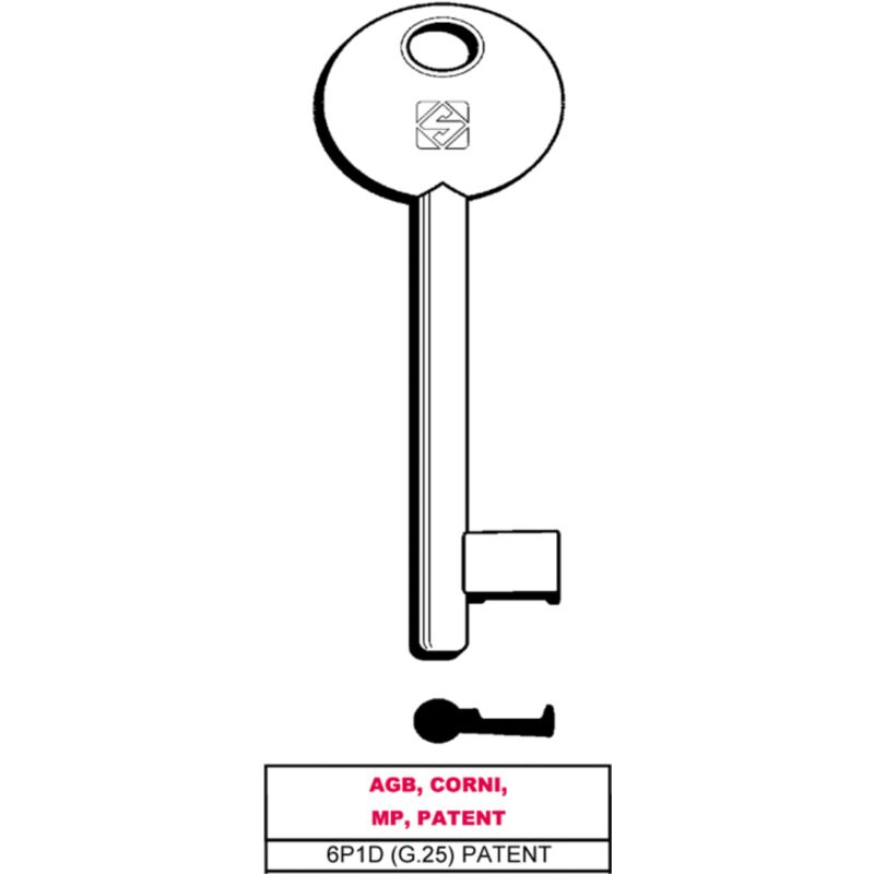 Silca chiave a mappa 6p1d (g.vaz 0) patent agb, corni, mp, patent Articolo produttore: 6P1D (20G)
