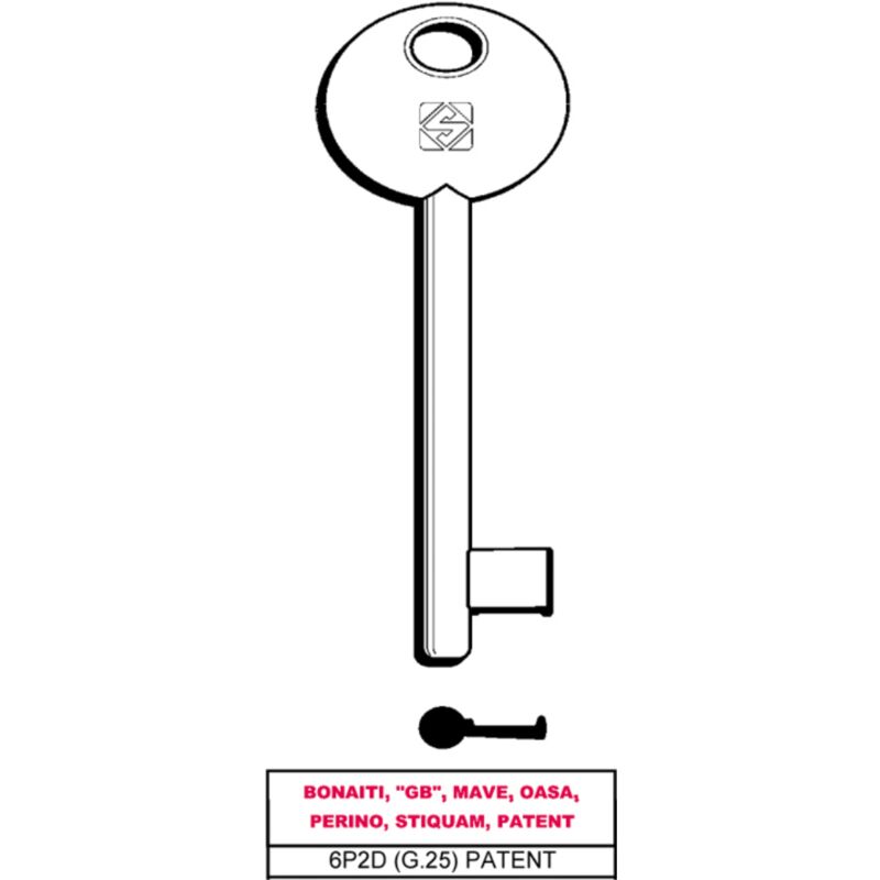 Silca chiave a mappa 6p2d (g.vaz 0) patent bonaiti Articolo produttore: 6P2D (20G)