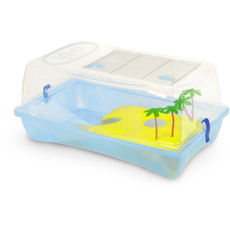 Base in polipropilene, coperchio rimovibile, doppia chiusura di sicurezza, apertura superiore in metallo, fornita con grande isola gioco con palme.