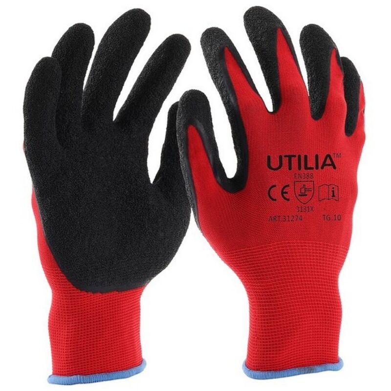 In nylon, con palmo e dita ricoperti in lattice, dorso aerato, polsino elasticizzato.
