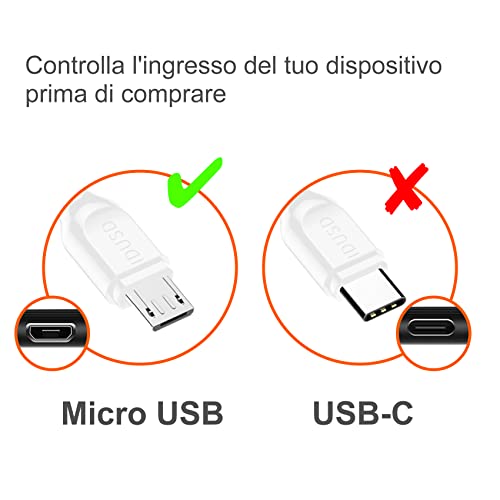 IDUSD Caricatore Universale USB da 2,4 A con Cavo Ricarica Micro USB Compatibile con Sansung S7 S6 J7 J6 J5, LG K10 k8 K7 K4, Xiaomi Redmi 6, Huawei, Oppo, Vivo, Realme, LG, Nokia,Motorola