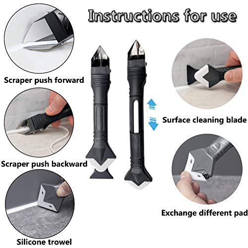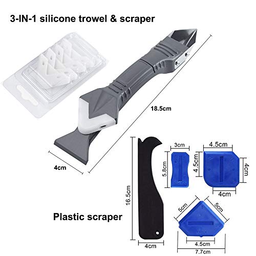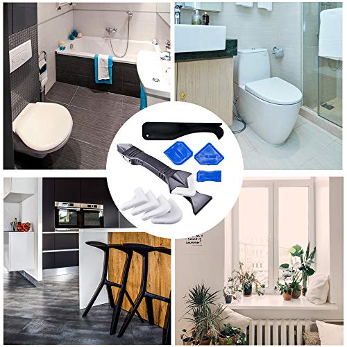 IEago RC 10Pcs Strumento per Calafataggio in Silicone, 3 in 1 Raschietto Spatola per Sigillante, Kit di Silicone Strumento Rimozione con Guanti di Gomma per Finestra del Bagno della Cucina Angolo