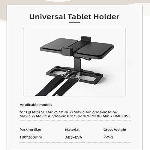 【Ampia Compatibilità】 Questo supporto per tablet è adatto a una varietà di modelli di telecomando per droni. Compatibile con DJI Mini 3 Pro / Mavic 3 / Mavic 3 Cine / Mavic Mini SE / Air 2S / Mini 2 / Air 2 / Mavic 2 / Mavic Air / Mavic Mini / Mavic Pro / Spark / FIMI X8 / FIMI X8 SE, ecc. La gamma di serraggio del supporto per tablet è di 109-170 mm (4,29-6,29 pollici), che è adatto per la maggior parte dei tablet sul mercato.