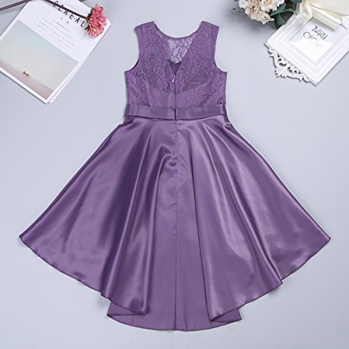IEFiEL Bambina Vestito Lungo Ragazza Principessa Abiti da Sposa Bambine Matrimonio Nozze Damigella d'Onore Elegante Estate Schiena di V Pizzo Lace 4-14 Anni Viola Scuro 16 Anni