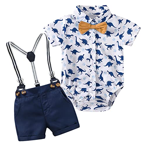 IEFiEL Completini e Coordinati da Neonato Gentiluomo Estivo 2 Pezzi Set Pagliaccetto a Quadri Maniche Corte con Fiocco + Pantaloncini con Bretelle Suit Formali Vestiti Blu scuro 12-18 mesi