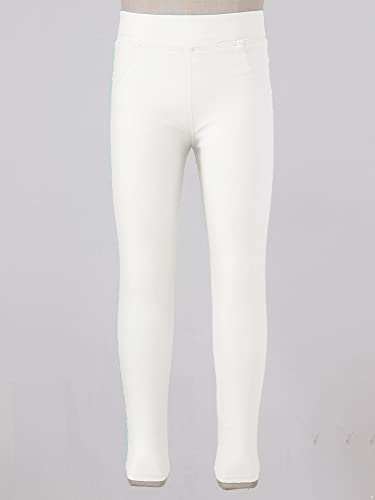 IEFiEL Leggings Stretch Pantaloni Elasticizzati Cotone Bambina Collant Calzamaglia Pantaloni Lunghi Skinny Slim Jeans Ragazza in Tinta Unita Taglia 3-14 Anni Bianco 13-14 Anni