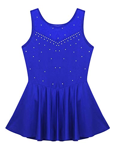 IEFiEL Ragazze Senza Maniche Rhinestone Dance Gonna Abiti da Pattinaggio Artistico in Tulle Abito da Ballo d'Arte Blue 5-6 Anni
