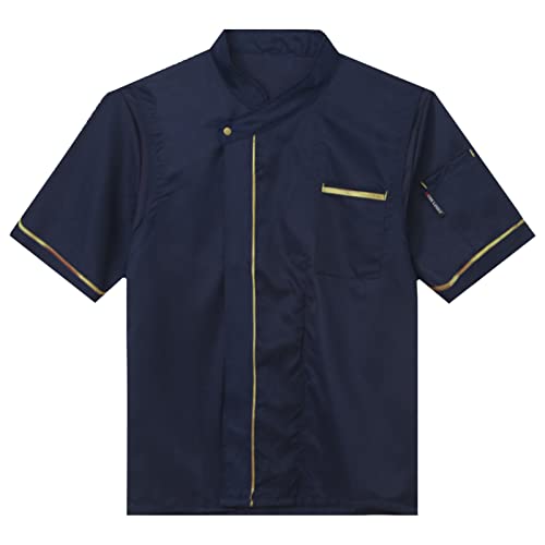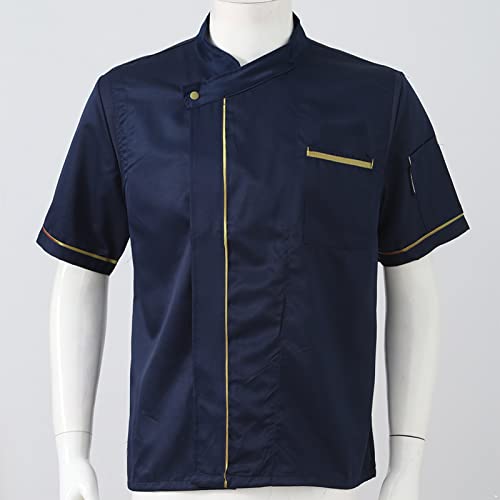 IEFiEL Unisex Giacca da Cuoco Divisa Chef Uniformi per Cucina Ristorante Mensa Hotel Camicia per Cameriere Casacca Cappotto a Manica Corta per Uomo Donna M-XXXL Blu Scuro E 3XL