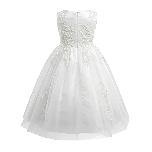 IEFiEL Vestito da Cerimonia Bambina Principessa Abito da Sera Compleanno Damigella Sposa Matrimonio Elegante Senza Maniche Abito Lungo con Fiore Floreale 2-16 Anni Avorio 8 Anni