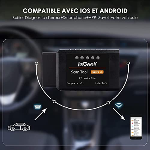 IeGeek OBD2 WiFi Wireless OBD Auto Code Lettore Scansione Strumento, Collegare Via WiFi con iOS, Android, Windows Dispositivi, 3000 Code Banca Dati, Adatto per Maggior Parte Auto