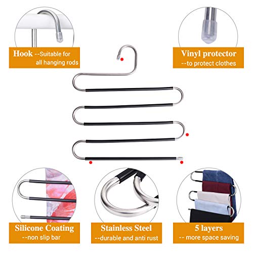 ➤ Super salvaspazio: questo appendiabiti per pantaloni a S con 5 ripiani consente di risparmiare molto spazio nell'armadio, mantenendo il tuo armadio pulito e ordinato. Lascia che i tuoi pantaloni e pantaloni stirati in perfette condizioni.