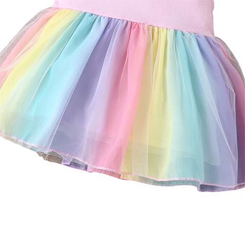 L&ieserram Blu o Rosa Vestito Gonna Tutu Siamese in Tulle Come Arcobaleno a Manica Corta con Merletto per neonata Bimba Ragazza Bambina Primaverile Estivo Autunnale (Rosa, 12-18 Mesi)