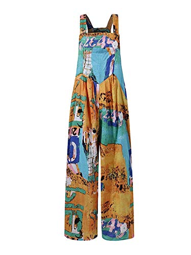 [Materiale]: la tuta da donna è realizzata in cotone e lino, morbida, leggera, accogliente, traspirante e che assorbe il sudore, resistente all'usura, delicata sulla pelle e comoda da indossare. Tuta da donna senza maniche floreale con spalline, pagliaccetto estivo casual allentato con pantaloni lunghi. Questa tuta da donna è di taglia asiatica, si prega gentilmente di controllare attentamente la tabella delle taglie prima dell'acquisto.