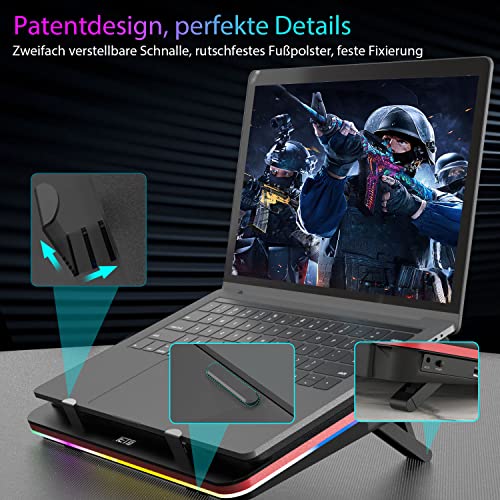 IETS GT500 - Ventola turbo forte (4600 giri/min) RGB per laptop con velocità continua, schiuma di tenuta per un rapido raffreddamento del laptop da gioco, 13-17,3 pollici con filtro antipolvere