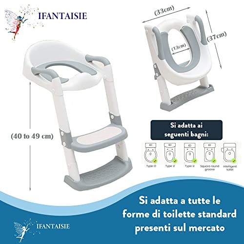 Ifantaisie Riduttore wc con gradino portatile y pieghevole per bambini. Vasino con scaletta da 1 a 7 anni - Sedia viaggio - Sedile WC bambino e bambina bianco e grigio + Libro 10€ Vasino in offerta