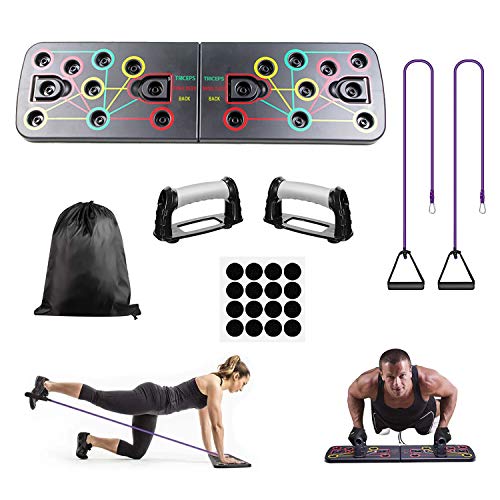 IFARADA 10 in 1 Push Up Board pieghevole, tavola di sollevamento pesi, multifunzione, push up rack board con bande di resistenza e manici antiscivolo per uomo donna fitness a casa