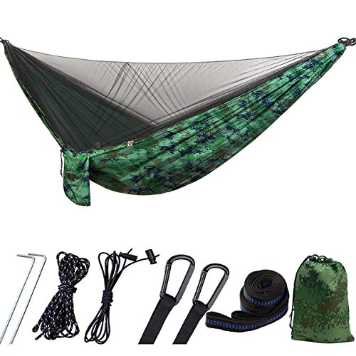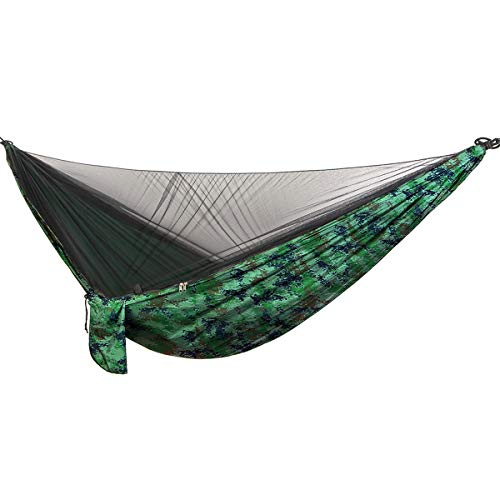 IFCOW - Amaca da campeggio con zanzariera, portatile, pieghevole, da viaggio, escursionismo, per due adulti, 1449963/12043527, Mimetico