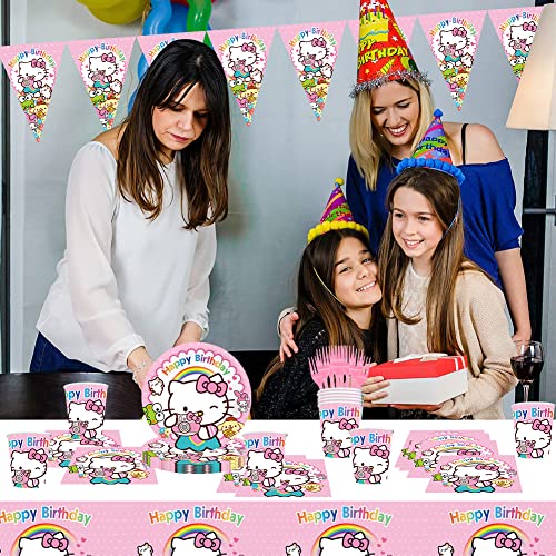 IFHDO HelloKiitty Stoviglie per Feste Compleanno, Kit di Stoviglie per Compleanno a Forma di HelloKiitty Decorazione da Tavola Piatto Tazza Tovagliolo Tovaglia per Compleanni Festa
