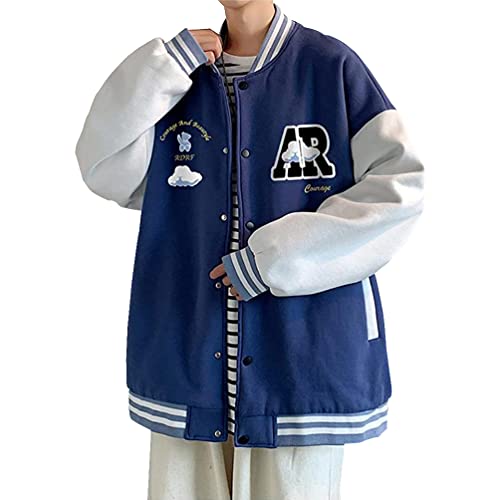 IFIKK Giacca da Baseball da Uomo Giacca Varsity Jacket Vintage Cappotto College Jacket Unisex Felpa Donna Lettera Jacket Felpa Motociclista Giubbotto Giacca da Coppia (AR-Blu Navy, M)