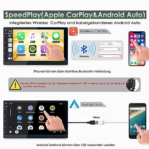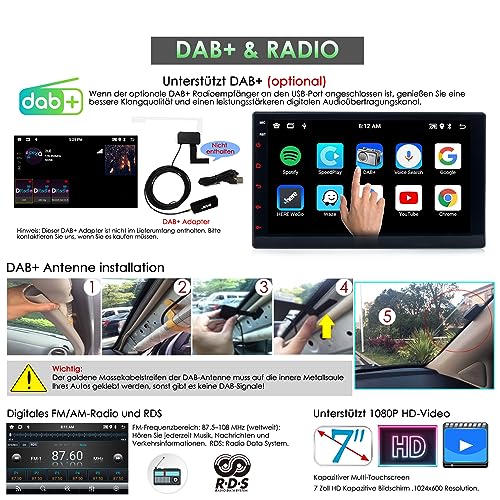 ❸【Mirror Link e Autoradio Bluetooth】: Mirror link per trasmettere immagini e suoni da telefoni Apple iPhone e Android. L'autoradio può utilizzare Mirror Link con telefoni IOS/Android. Autoradio Bluetooth: Funzione A2DP: puoi riprodurre musica stereo tramite Bluetooth. Puoi scaricare la rubrica dal telefono cellulare su questo dispositivo e cercare i membri dei contatti nelle voci della rubrica.